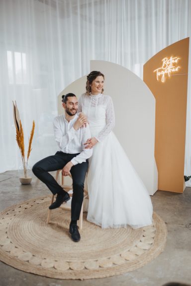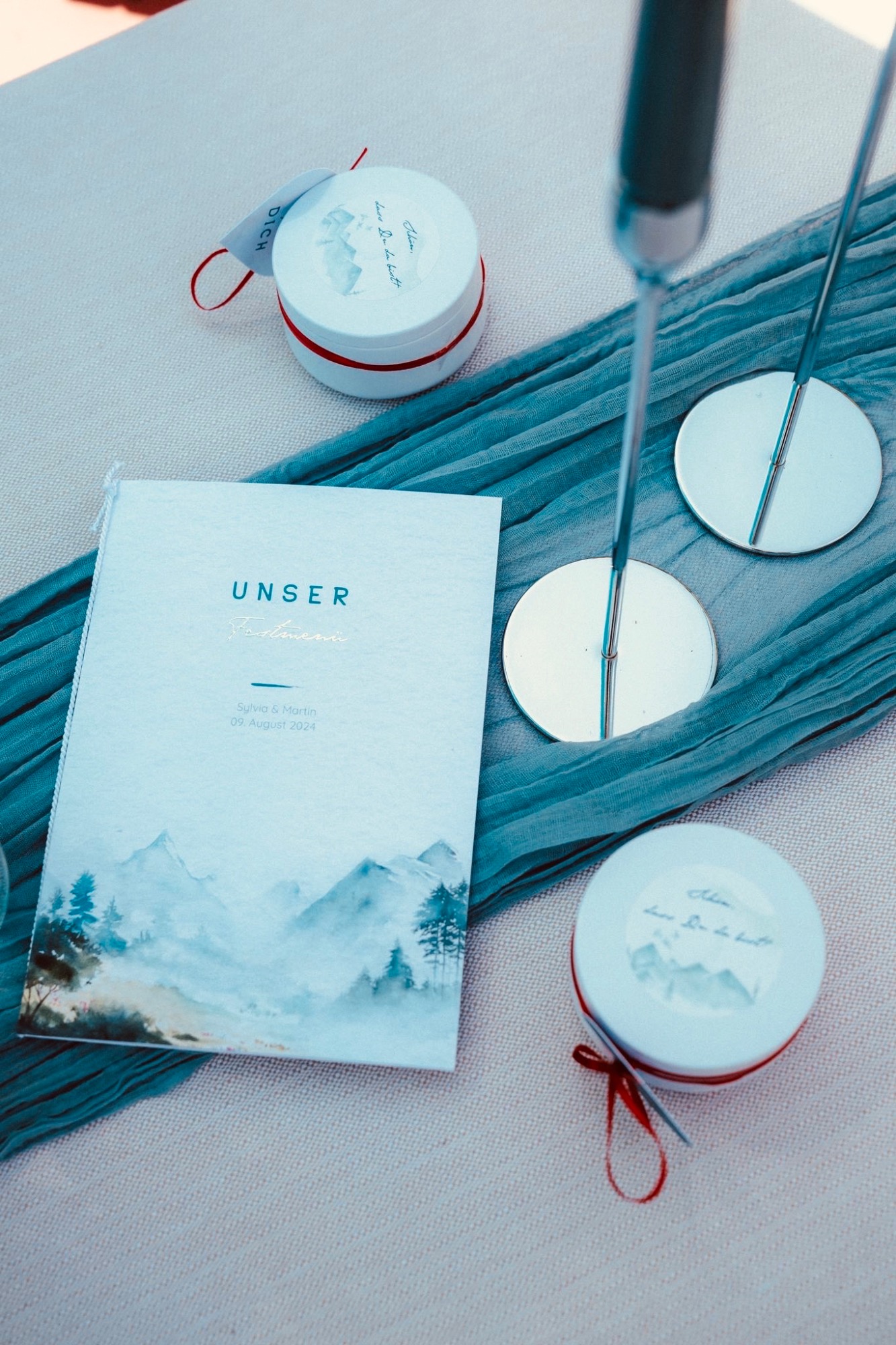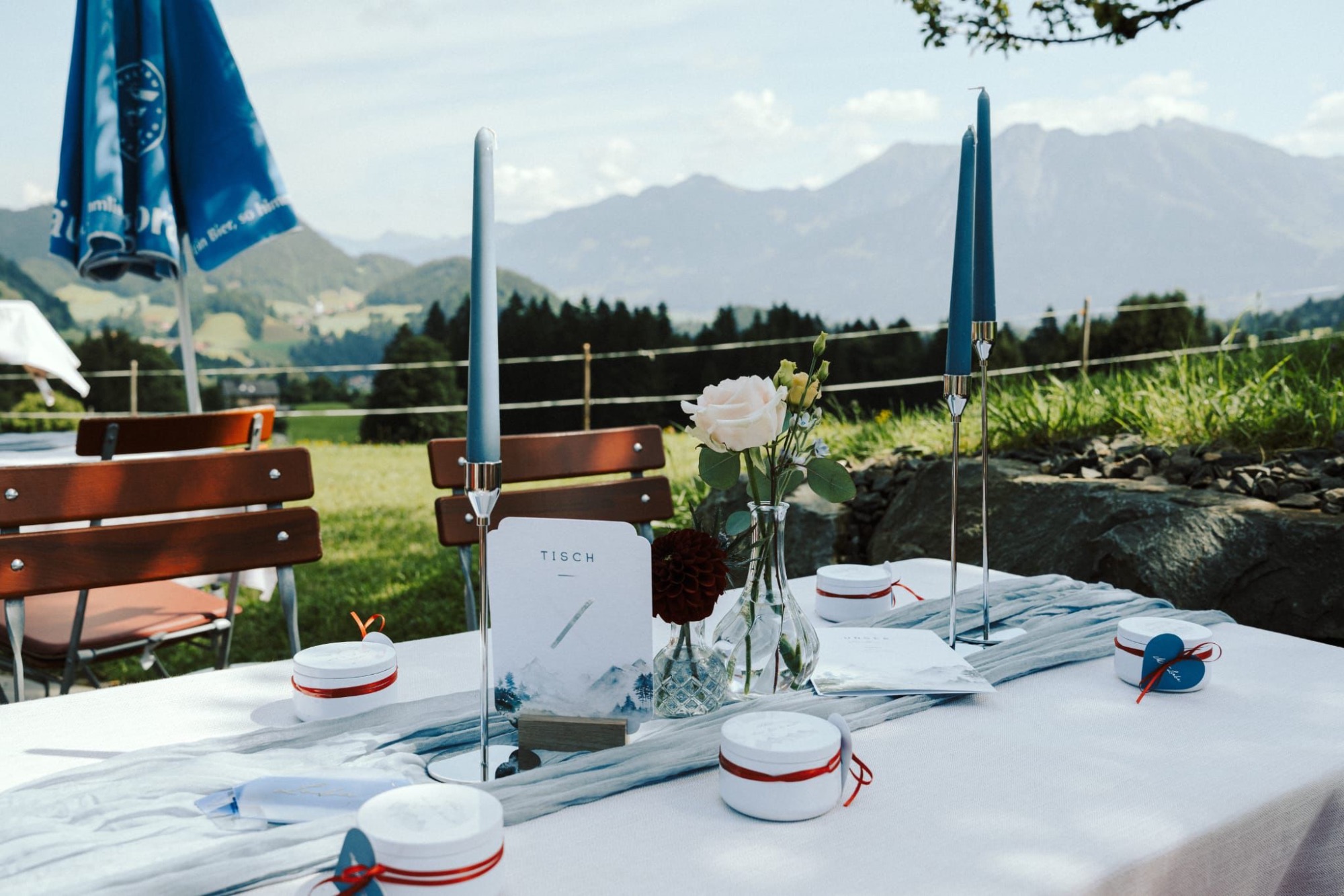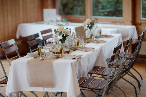 Die Hochzeit befindet sich in einer gemütlichen Alpe statt. Deshalb war es wichtig, dass alles in Ton in Ton zu gestalten und, dass es praktisch bleibt.