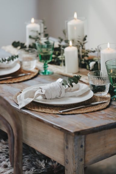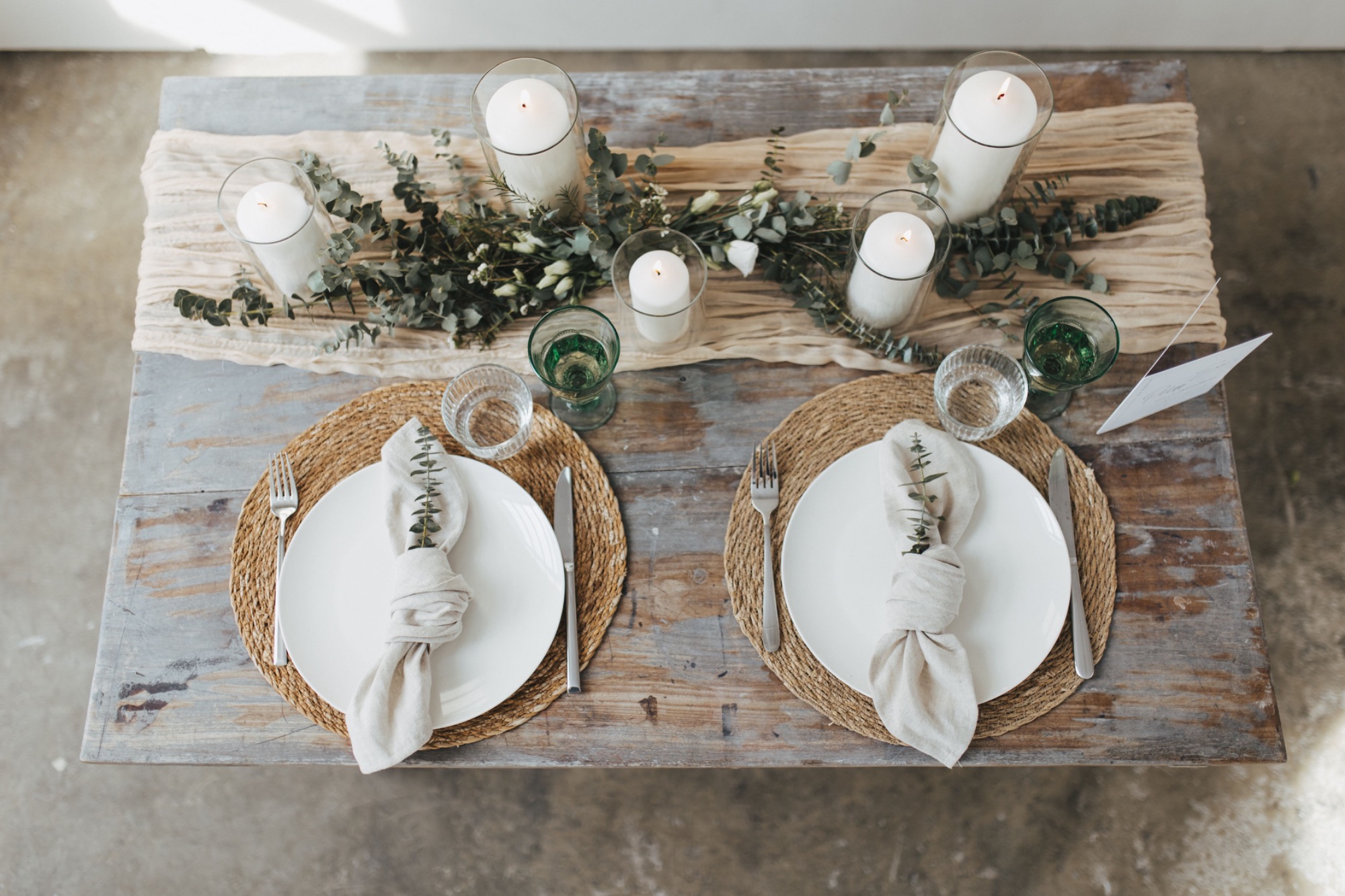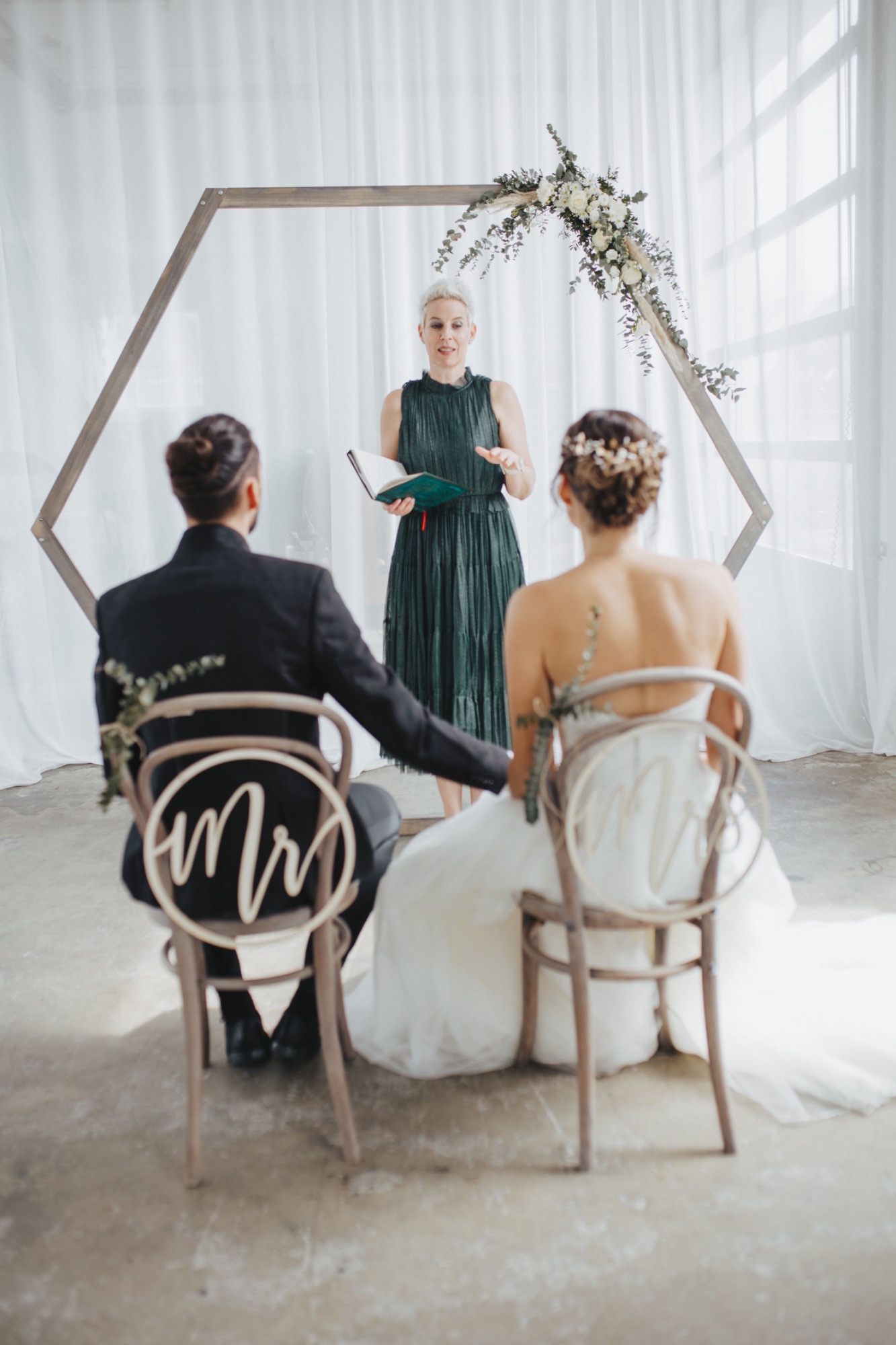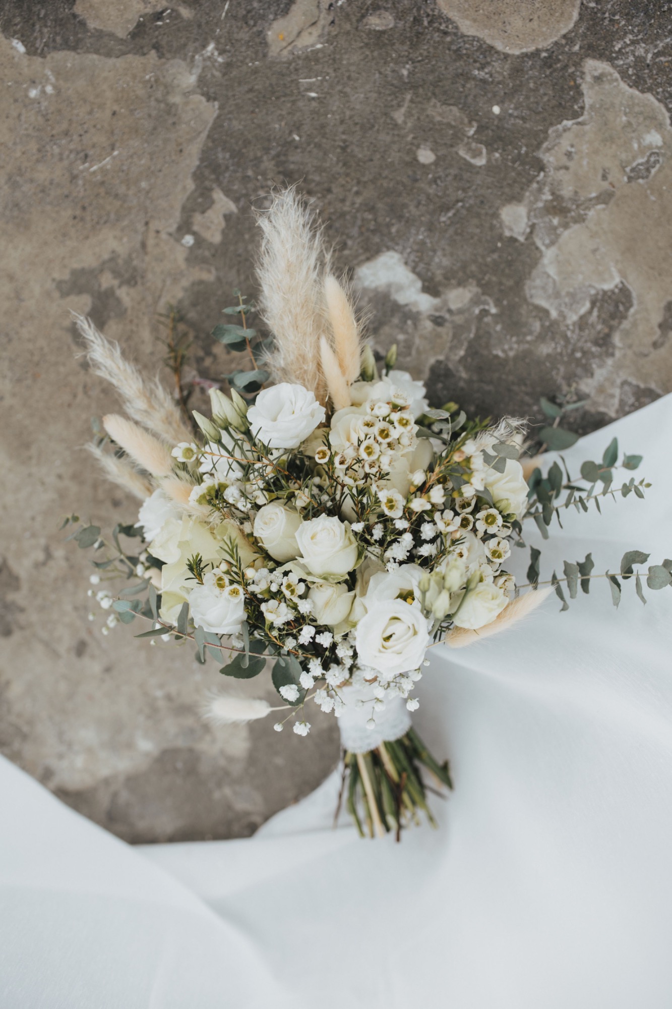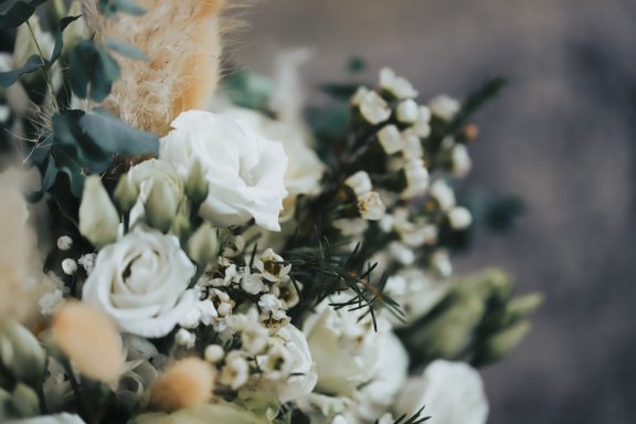 Samuel &Simone haben sich eine winterliche Hochzeit gewünscht mit vielen Naturmaterialien. Ich habe deshalb verschiedene Stoffe aus Leinen sowie trocken Blumen verwendet.